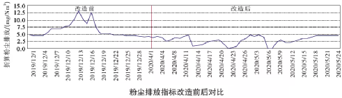 粉塵排放指標(biāo)比較平穩(wěn),排放量基本穩(wěn)定在5mg/Nm³以內(nèi);