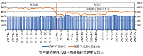由于袋式收塵系統(tǒng)阻力大幅下降,尾排風(fēng)機(jī)拉風(fēng)能力相應(yīng)提高,給水泥燒成系統(tǒng)的提產(chǎn)創(chuàng)造了條件,整條生產(chǎn)線的產(chǎn)量也有了一定幅度的提高。