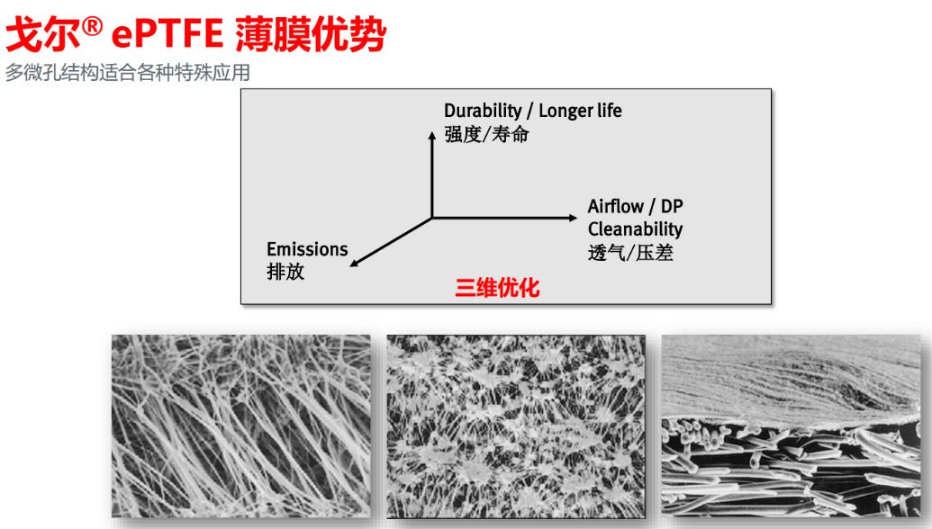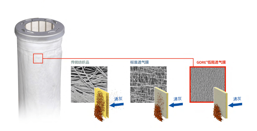 為此,水泥人網(wǎng)和上述水泥企業(yè)相關(guān)技術(shù)負(fù)責(zé)人展開(kāi)了深入的技術(shù)交流,發(fā)現(xiàn)這幾家水泥廠在濾袋的選擇方面都不約而同的選擇了戈?duì)朑ORE®低阻濾袋。其中,有一位技術(shù)負(fù)責(zé)人對(duì)水泥人網(wǎng)表示,戈?duì)柟镜谋∧ぜ夹g(shù)和覆壓技術(shù)都是國(guó)際一流,不但在窯尾廢氣處理中應(yīng)用成功,在窯頭廢氣外理的成功案例也比比皆是。其最新推出的低阻濾袋更是采用了第5代ePTFE膜,具有以下出色性能: