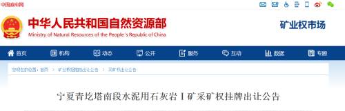 近日,自然資源部發布了關于寧夏青圪塔南段水泥用石灰巖Ⅰ礦采礦權掛牌出讓結果公示。水泥人網從公示中得知寧夏豪龍建材以1.25億元競得了該礦山采礦權。