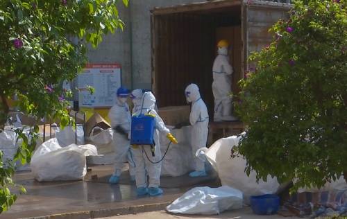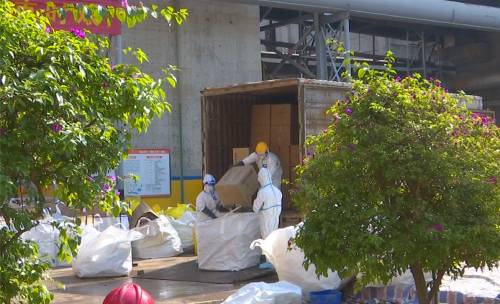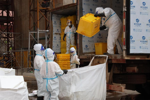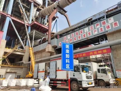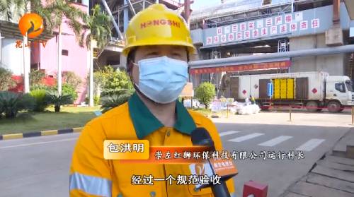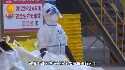 崇左紅獅環保技術有限公司運行科長包洪明:從醫院轉運過來密閉包裝,再轉到我們公司,經過一個規范驗收,再轉入作業現場。現場再進行一些消殺,包括作業環境經過消殺之后再進行卸車,水泥窯高溫焚燒、分解,達到一個無害化的處理。