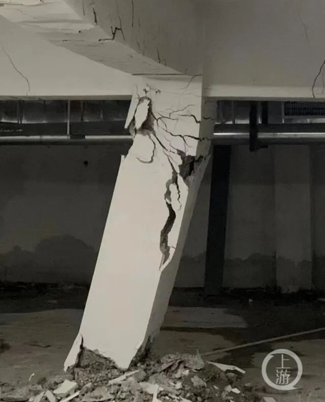 ▲除了立柱,地下室的橫梁也出現了嚴重的斷裂。圖片來源/受訪者供圖