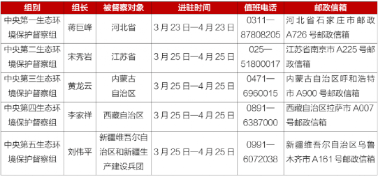 中央環保督查組于3月23日至25日進駐五個地區開展督察