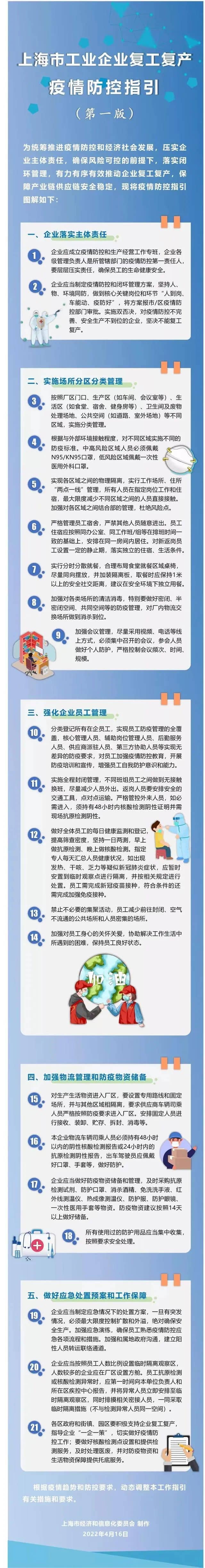 同日,上海市經信委發布《上海市工業企業復工復產疫情防控指引(第一版)》明確,各區政府和街鎮、園區要積極支持企業復工復產,指導企業“一企一策” ,切實做好疫情防控工作。同時,上海第一批重點復工企業“白名單”出爐,共計666家企業上榜。
