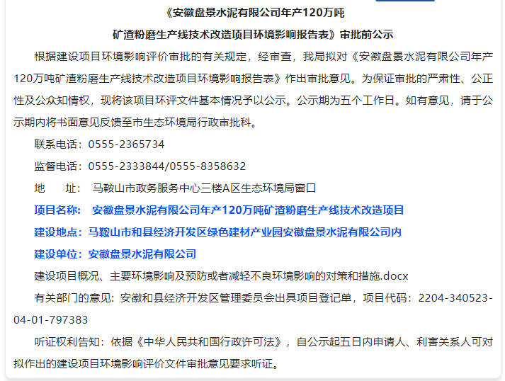 安徽盤景水泥有限公司環境違法一案,我局立案調查后,依法進行審查,現已審查終結。