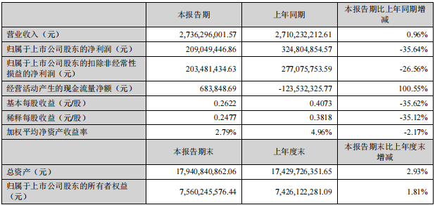 同日,華新水泥發(fā)布的2022年第一季度報(bào)告顯示 ,一季度華新水泥實(shí)現(xiàn)營(yíng)業(yè)收入65.31億元,同比增長(zhǎng)5.52%;歸屬于上市公司股東的凈利潤(rùn)6.72億元,同比減少8.51%;歸屬于上市公司股東的扣除非經(jīng)常性損益的凈利潤(rùn)6.5億元,同比減少10.64%。