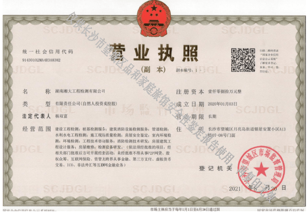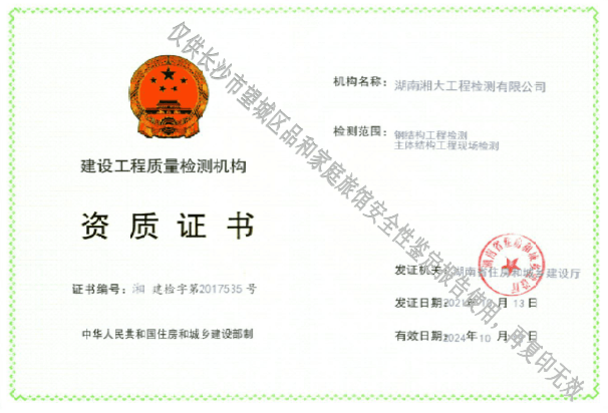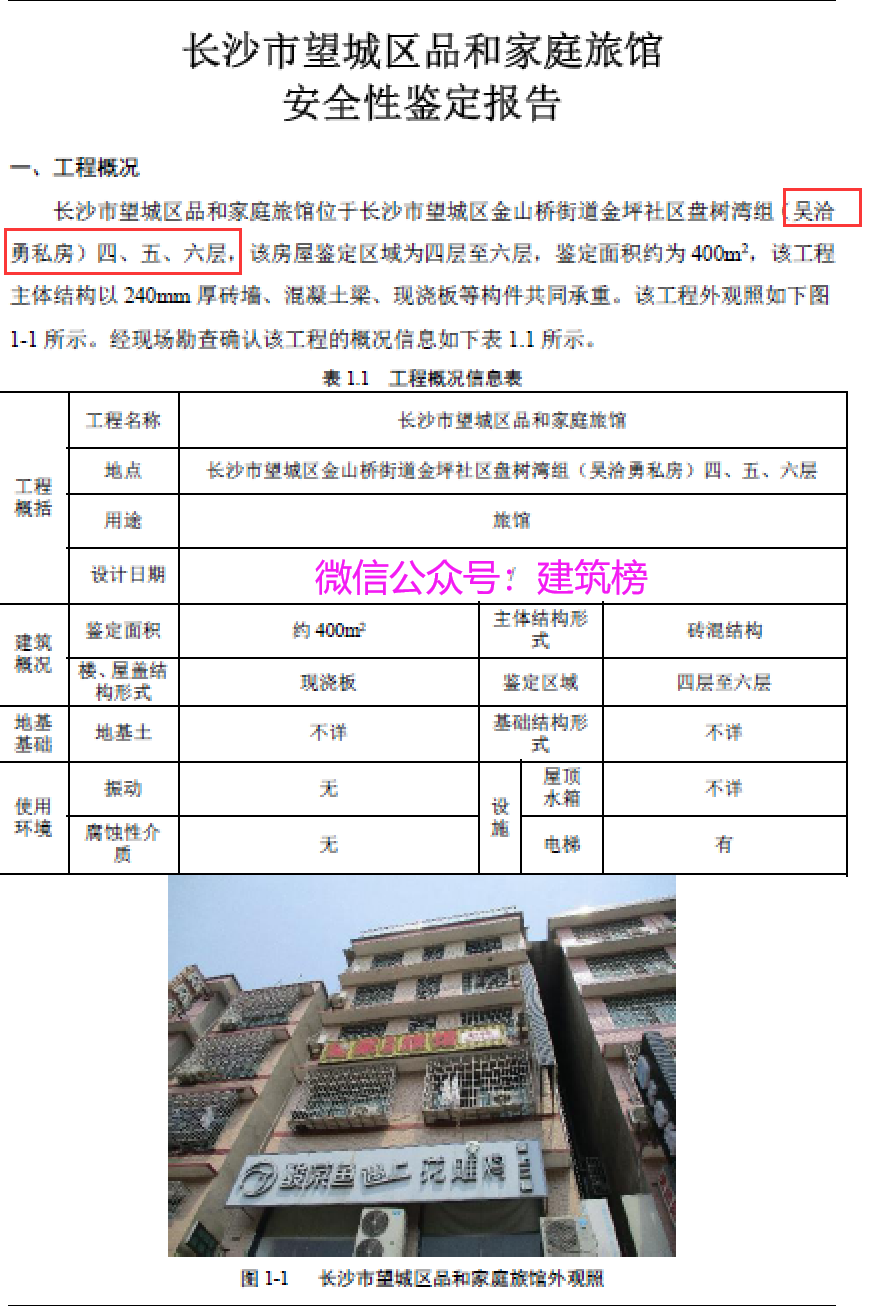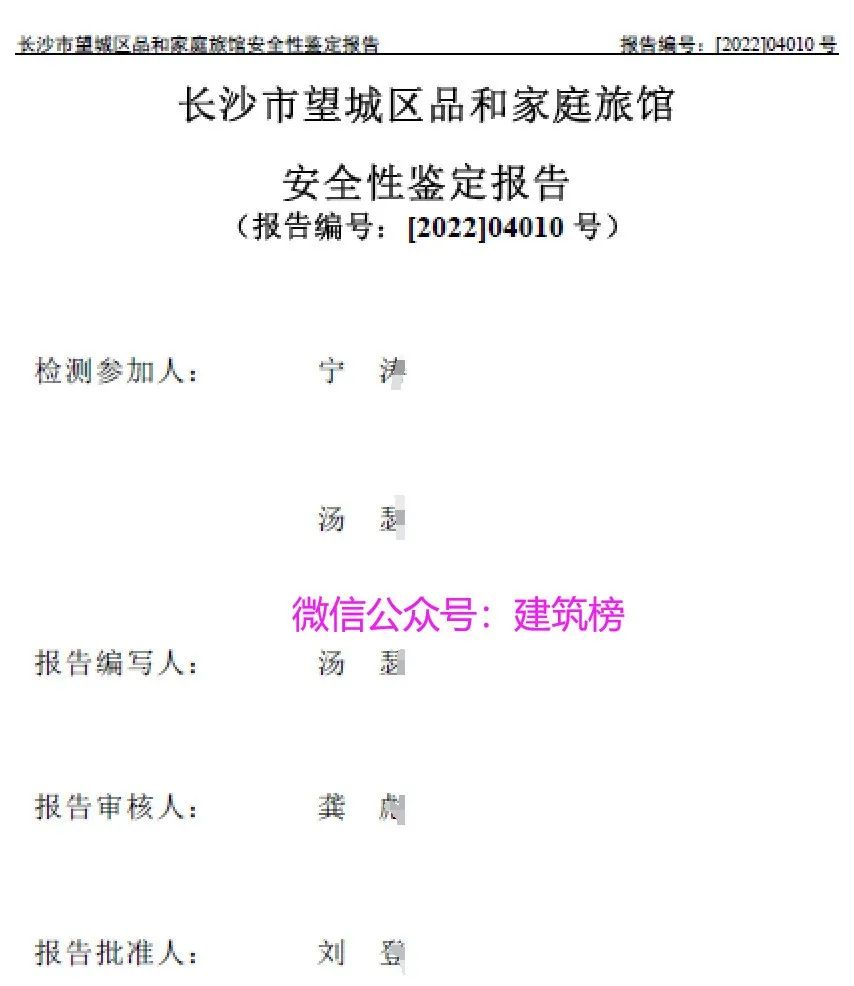 經查,2022年4月13日,湖南湘大工程檢測有限公司(法人代表:譚某,公司性質:私營,注冊地:望城區月亮島街道)對該自建房家庭旅館(4、5、6樓)進行房屋安全鑒定后出具虛假房屋安全鑒定報告,公司法人代表譚某及技術人員寧某、湯某、劉某、龔某等5人涉嫌提供虛假證明文件罪。