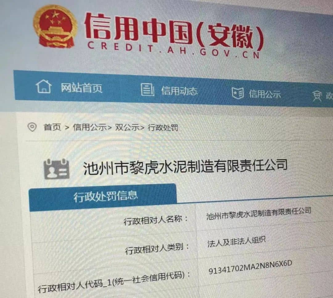 池州市黎虎水泥制造有限責(zé)任公司,法定代表人為王印璽,該公司在未取得施工許可手續(xù)情況下,擅自施工,此違法違規(guī)建設(shè)工廠(chǎng),被該市貴池區(qū)城市管理行政執(zhí)法局處罰。