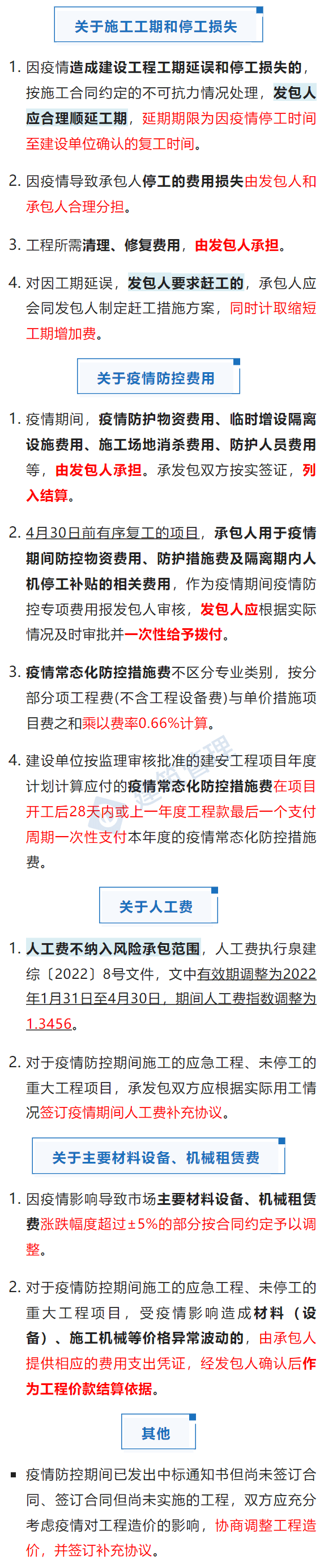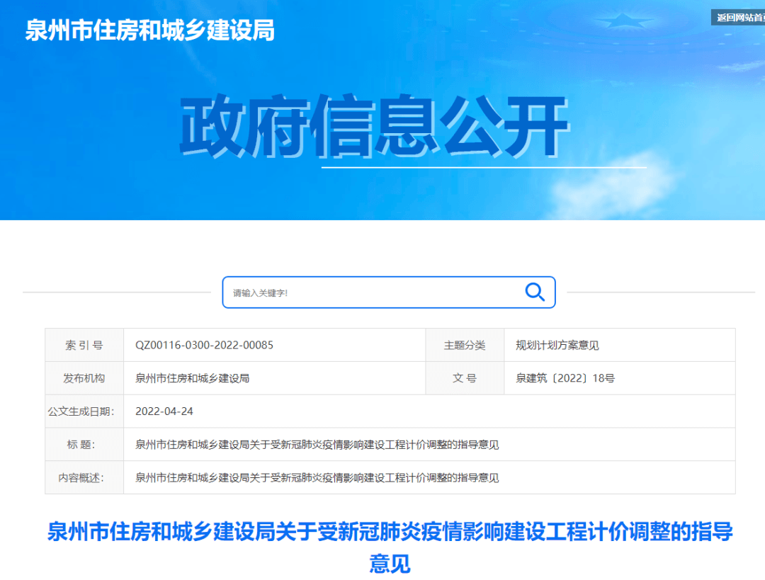 4月24日,泉州市住建局發布了《關于受新冠肺炎疫情影響建設工程計價調整的指導意見》。