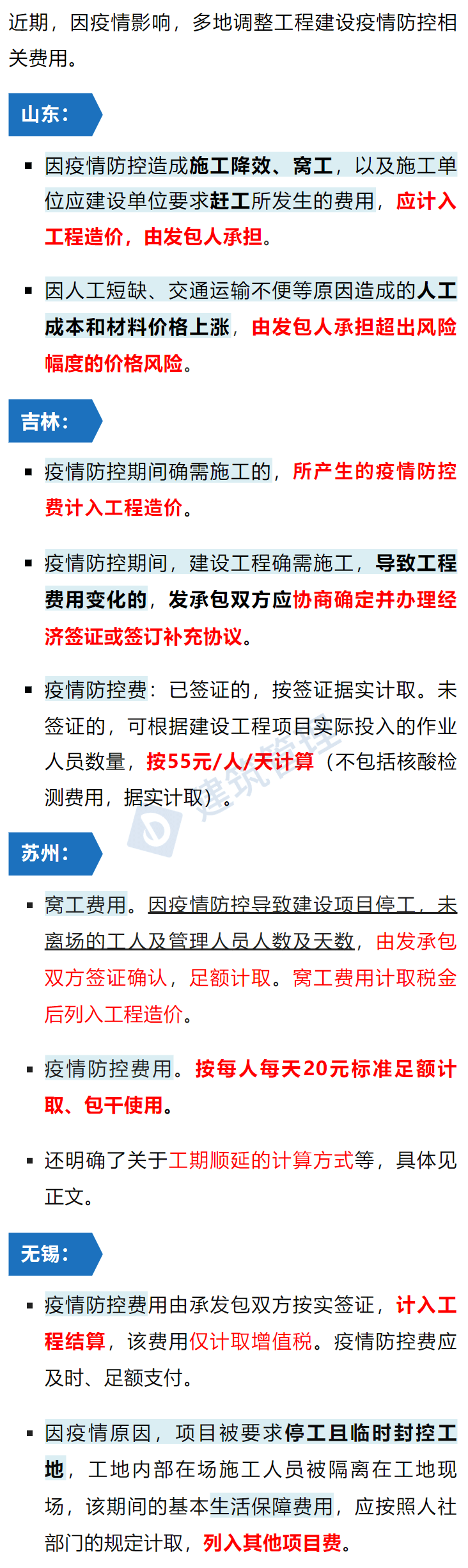 截至目前,各省市在疫情防控期間建設工程計價政策文件如下: