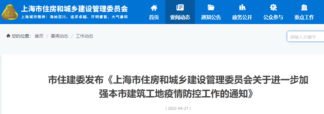 為全面貫徹落實市委、市政府疫情防控工作決策部署, 堅持“動態清零”總方針不動搖,把建筑工地疫情社會面清零落到實處,堅決遏制工地疫情反彈,市住房城鄉建設管理委發布了《上海市住房和城鄉建設管理委員會關于進一步加強本市建筑工地疫情防控工作的通知》。