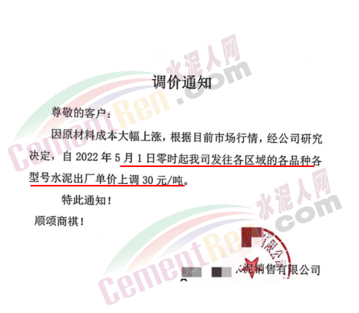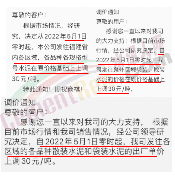 同期,福建區(qū)域多家企業(yè)通知福建省全區(qū)域“普漲30元/噸”,企業(yè)漲價通知函稱,由于燃煤、用電價格上漲,加之運輸費用漲幅明顯,水泥生產(chǎn)經(jīng)營成本增加,為轉(zhuǎn)移成本壓力,提升盈利,決定上調(diào)水泥價格。