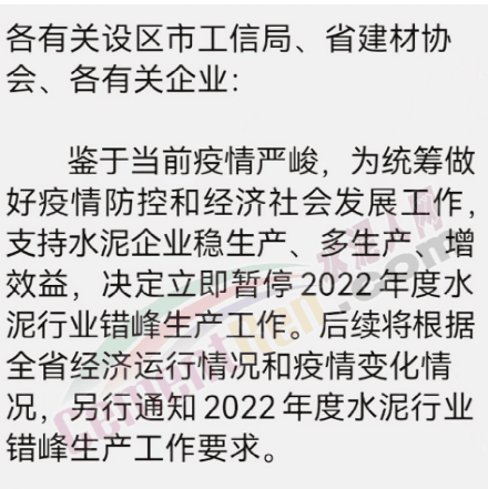 貴州省近期也有發(fā)布文件要求水泥企業(yè)再次延長二季度錯峰生產(chǎn)時間至45天/線。