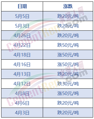 以鄭州市為例,近一個月以來,水泥價格分別于4月8日、16日、18日三輪上調(diào),累計漲價150元/噸,同期,連續(xù)八輪下跌,累計跌價達200元/噸。
