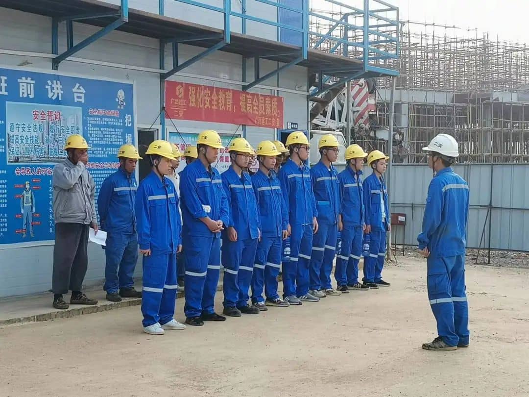 對于項目來說“安全就是效益”,華宏水泥項目青年突擊隊隊員們時刻把“安全第一,預防為主”的觀念牢記心頭。他們每天在施工前召開班前會,對每位管理人員及作業班組分別進行安全技術交底,讓每個人了解自己所在施工區域的安全隱患以及風險防范措施;每周組織隊員檢查施工區域內的臨邊防護措施是否牢固可靠,危險區域的安全警示標志是否缺失,安全防護用品是否還能滿足施工需求等,并積極組織開展消防演練,為項目安全生產保駕護航。在他們的堅持努力下,項目建設至今無任何安全質量事故發生。