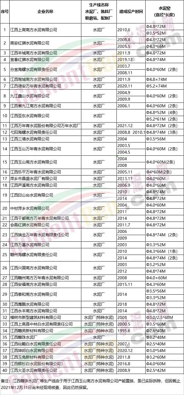 圖片江西省水泥熟料生產(chǎn)線情況表