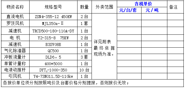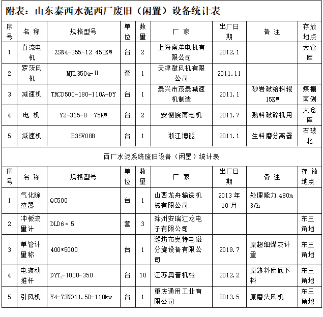 近日,山東泰西水泥有限公司委托水泥人網出售一批閑置物資,具體出售情況如下:
