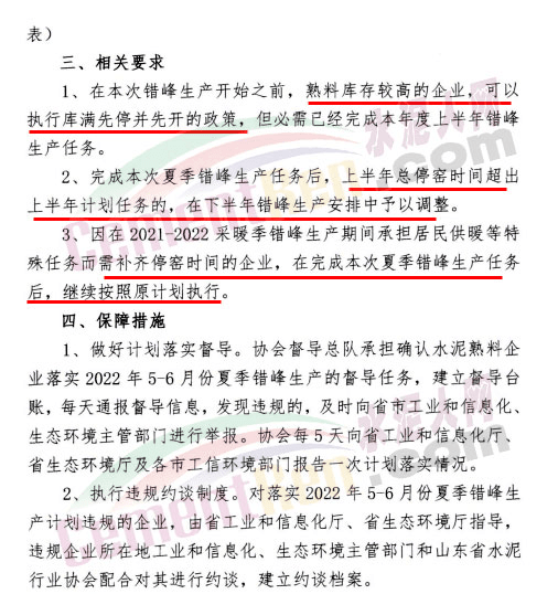 實施時間為2022年5月21日0:00-6月9日24:00,時間20天。實施對象為山東省水泥熟料企業的熟料生產線(含特種熟料生產線和建通窯、不含山東魯北化工股份有限公司和山東匯泰再生資源有限公司的化工配套熟料生產線)。
