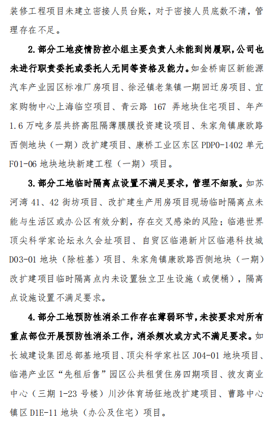 1.部分工地對現場人員底數摸排不清,管控不力。