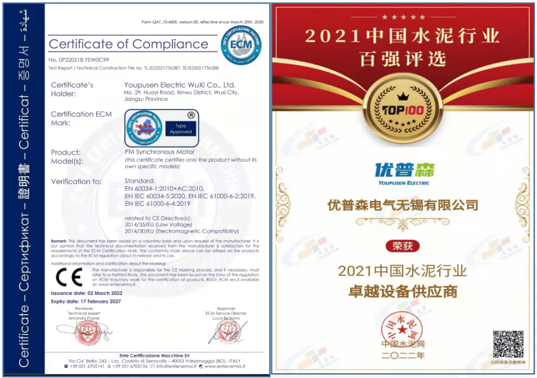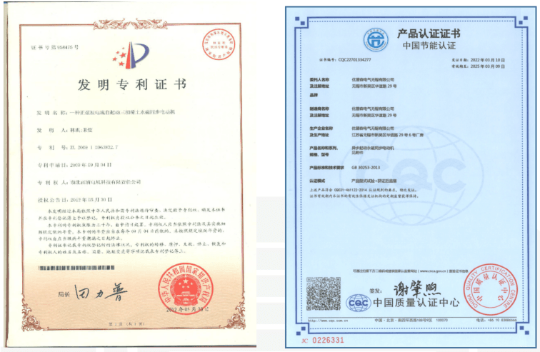 優普森是在國內永磁電機領域開始較早、產品系列齊全、電機效率更高的企業,其低壓永磁同步電機全系列獲得國家一級能效標準認證,是國家電機等效新標準實施以來,業內第一批獲此殊榮的單位。