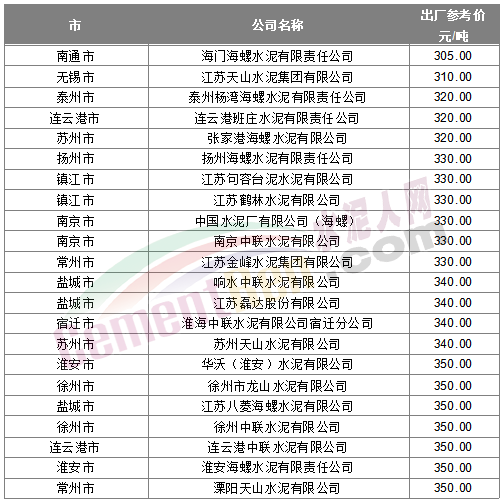 * 上述出廠參考價來源水泥人網信息中心人工采集,僅供參考。如與實際成交不符請以實際成交價格為準。