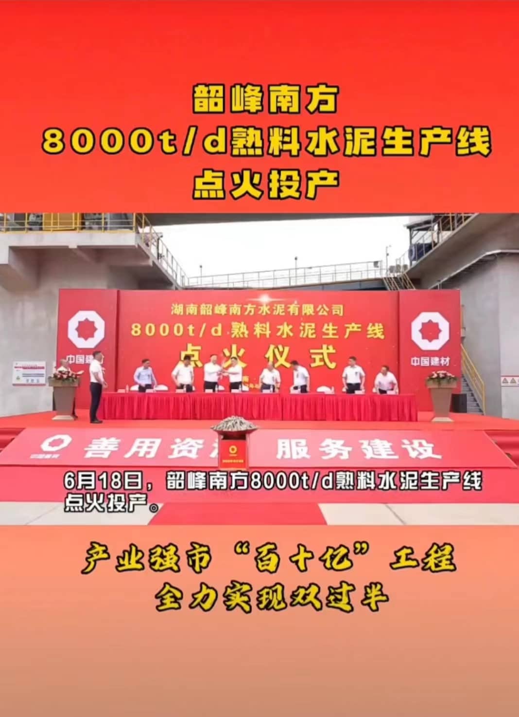6月18日,韶峰南方8000t/d熟料水泥生產(chǎn)線點火投產(chǎn)。中南水泥黨委書記、董事長、總裁呂文斌,湘潭市人大常委會副主任、湘鄉(xiāng)市委書記趙新文,市委副書記、市長郭勇出席點火儀式。