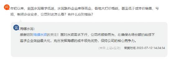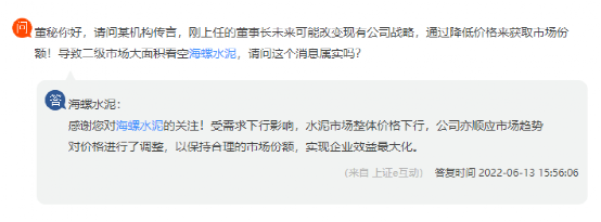 據(jù)了解,近期海螺水泥在回復(fù)投資者提問(wèn)時(shí)曾多次提到“確保市場(chǎng)份額,追求企業(yè)效益最大化”。