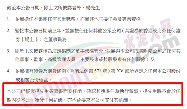 日前海螺水泥發布公告,董事會一致推選楊軍擔任第九屆董事會董事長。且截至公告日楊軍并無擔任集團任何其他職務,亦無其他主要任命及專業資格。 且不擁有企業股份,也不從海螺水泥領工資,也不會要求海螺水泥發工資。