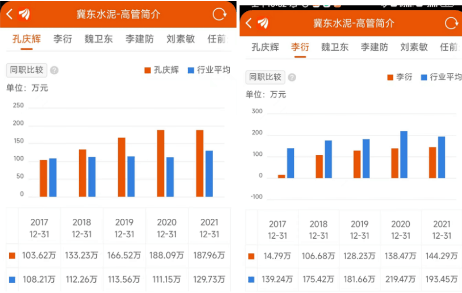 冀東水泥董事長孔慶輝年薪187.96萬元,總經理李衍年薪144.29萬。董事長孔慶輝薪資從2020年的188.09萬下調至187.96萬。2022年一季度冀東水泥應付職工薪酬同比下調9.06%。