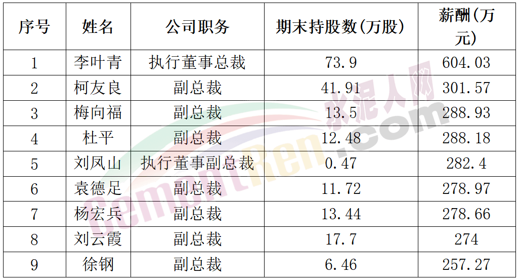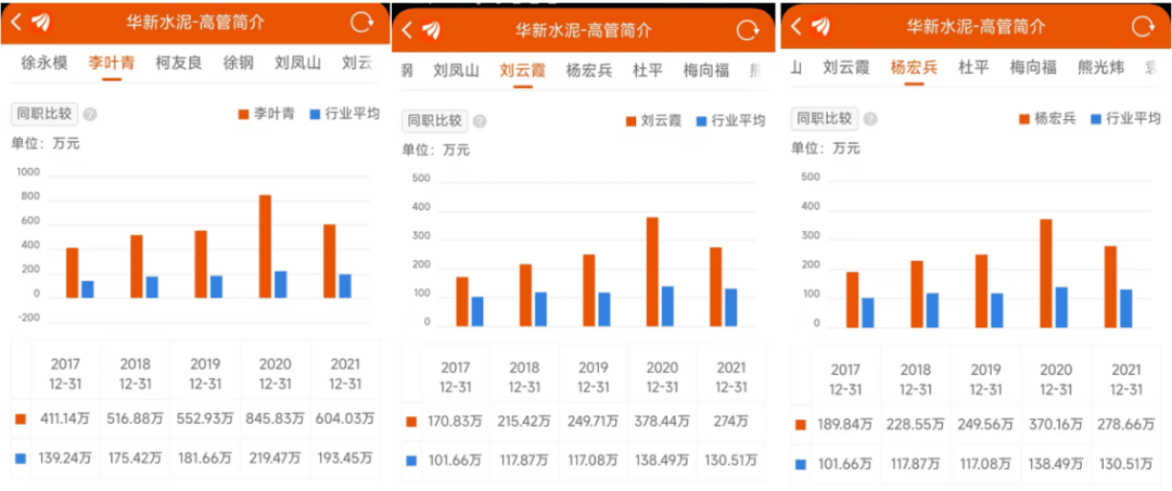行業公認薪資較高的華新水泥9位高管年薪過200萬,但是近兩年內薪資均有下調。總裁李葉青年薪從2020年的845.83萬,降至604.03萬,仍為全行業最高年薪。