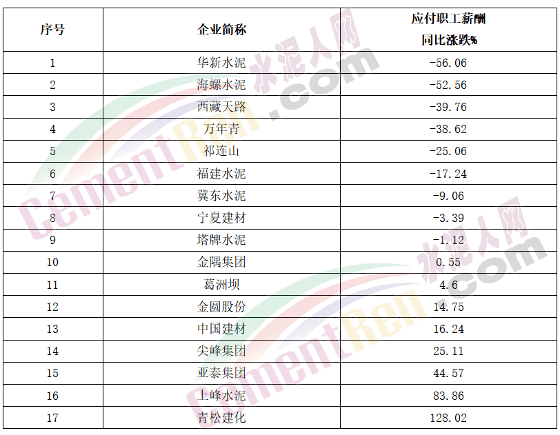 半數以上水泥公司薪酬同比下跌,華新、海螺跌超50%