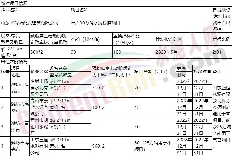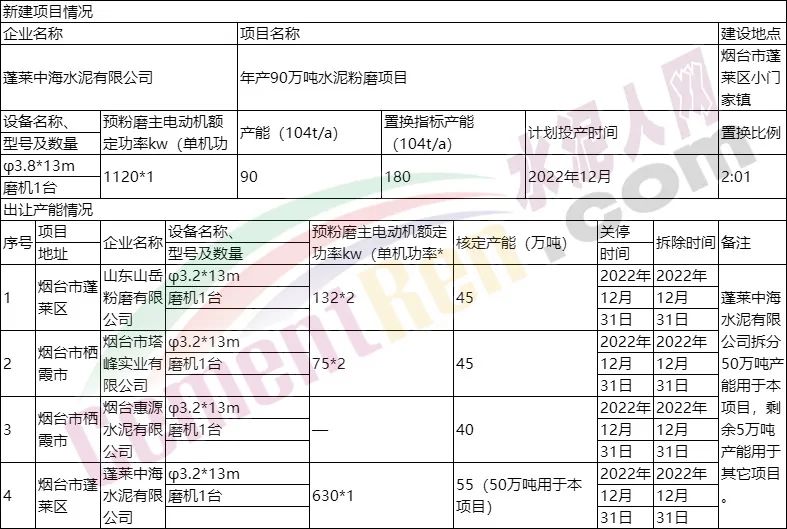 年產(chǎn)90萬噸水泥粉磨項(xiàng)目產(chǎn)能置換情況表