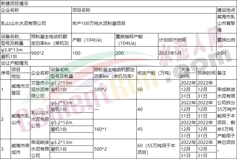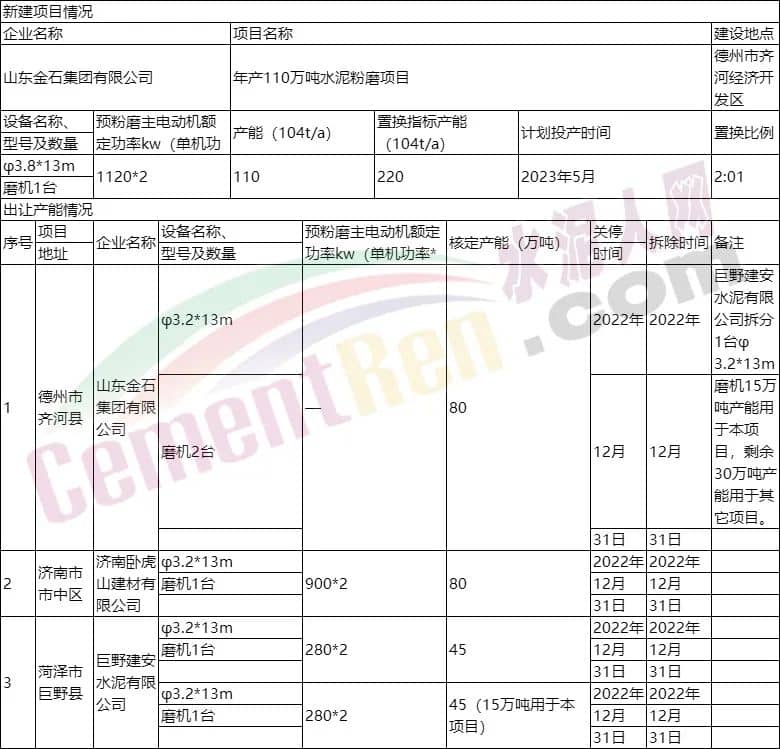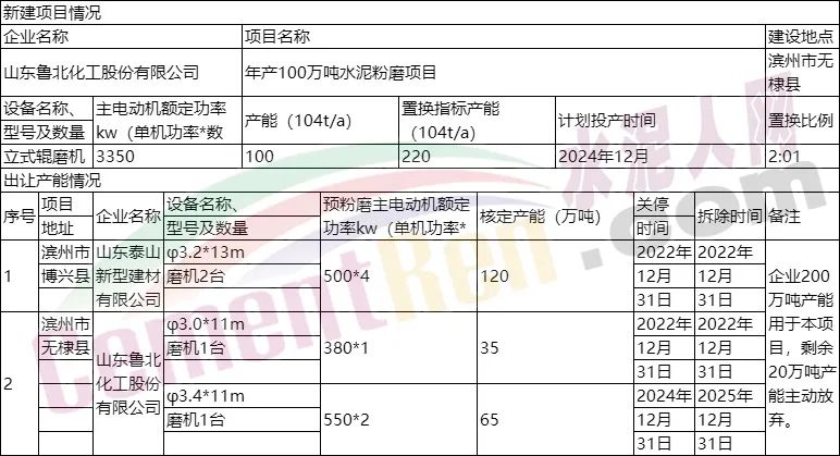 年產(chǎn)100萬噸水泥粉磨項(xiàng)目產(chǎn)能置換情況