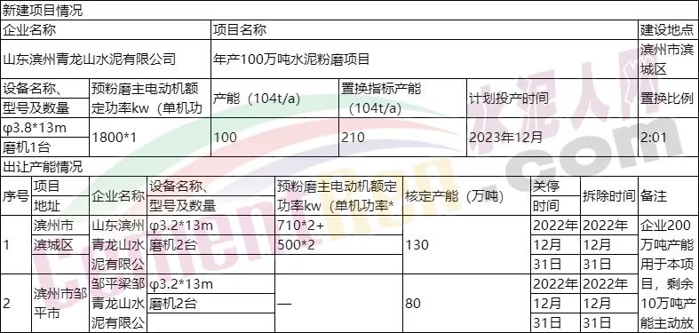 年產(chǎn)110萬噸水泥粉磨項(xiàng)目產(chǎn)能置換情況