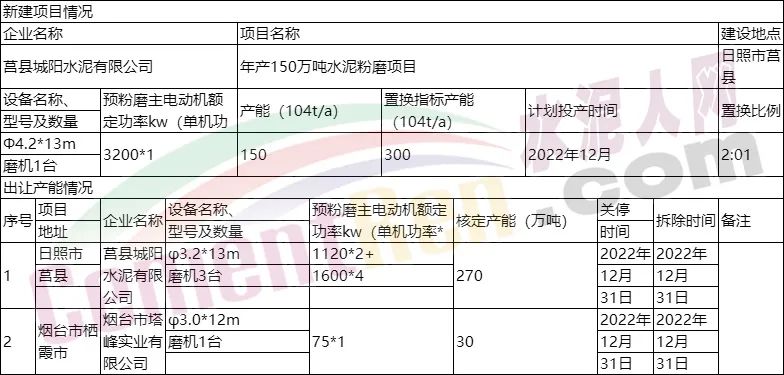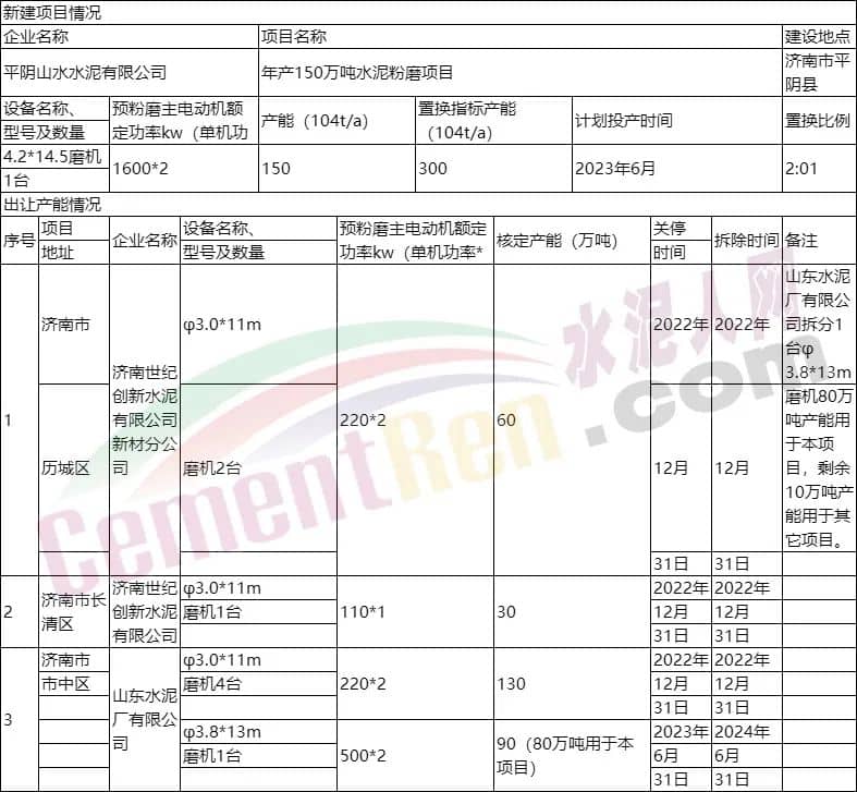 年產(chǎn)150萬噸水泥粉磨項(xiàng)目產(chǎn)能置換情況