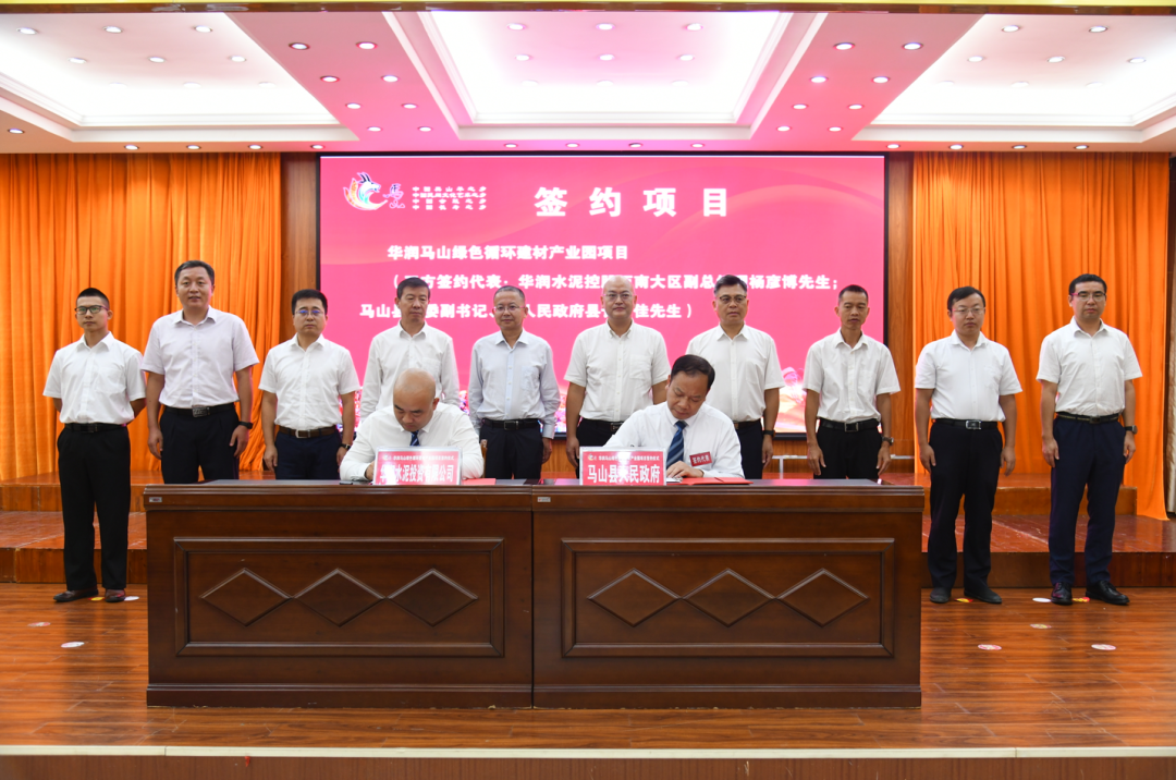 7月18日,華潤馬山綠色循環建材產業園投資協議簽約儀式在廣西南寧馬山縣政府會議室順利舉行。馬山縣委書記穆賢清,縣人大常委會主任許安健,縣政協主席羅鋒,縣委常委、副縣長彭功茂,華潤水泥西南大區總經理彭方清,華潤電力、華潤燃氣、華潤五豐等業務單元在桂業務負責人參加儀式并見證簽約。馬山縣長韋佳,華潤水泥西南大區副總經理楊彥博代表雙方簽約。