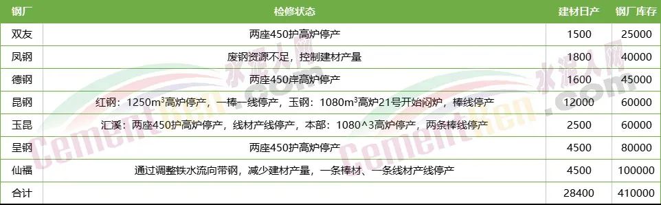 河南省亞新一座高爐燜爐,兩條盤螺軋線停產檢修