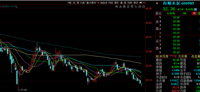 并且,按照前復權價格顯示,海螺水泥的現價為32.36元,已經創下了今年以來的收盤價新低。