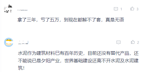 不過,股價自高位下落,就會有看多的觀點出現,有投資者表示:“水泥作為建筑材料已有百年歷史,目前還沒有替代產品,還不能說已是夕陽產業,世界基礎建設還離不開水泥及水泥建筑!”