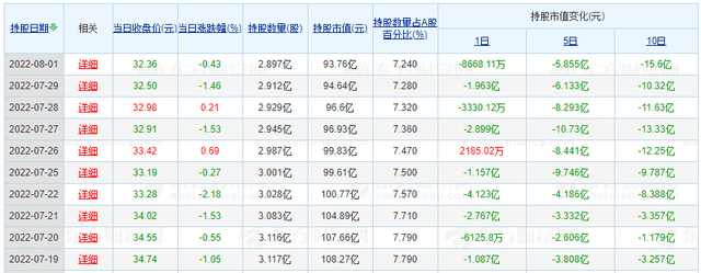 最近10個交易日,北向資金的持股數量持續在減少,由3.117億股減少至2.897億股。再結合海螺水泥一季度披露的股東數據可以看出,在二季度里,北向資金就在減倉了。
