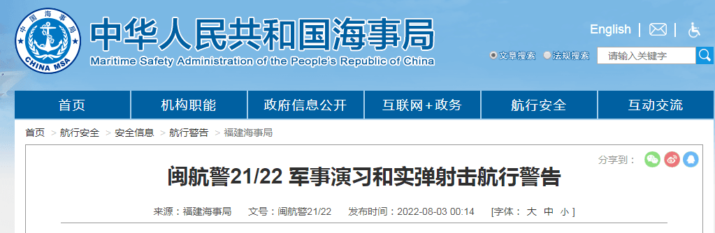 從軍事層面上,大陸早已開始行動。中國軍方在佩洛西竄訪臺灣的當晚發(fā)布了一則重要消息,解放軍將會在8月4日至8月7日,在臺灣周圍展開大規(guī)模的軍事演練,并且還將組織實彈射擊。在開展軍事演練期間,不允許任何船只和飛行器靠近。