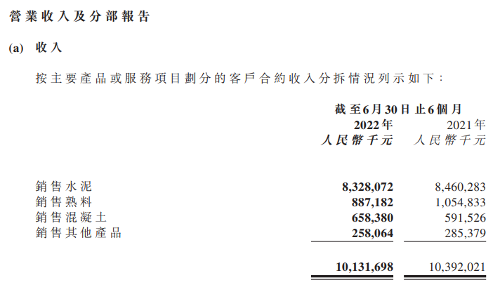 2022年上半年,山水水泥持續(xù)致力于細(xì)化內(nèi)部基礎(chǔ)管理,以提升現(xiàn)有生產(chǎn)運(yùn)營(yíng)質(zhì)量和可持續(xù)盈利能力。截至2022年6月30日,水泥產(chǎn)能9,679萬噸,熟料產(chǎn)能5,047萬噸,商品混凝土產(chǎn)能1,710萬立方米。報(bào)告期內(nèi),本集團(tuán)銷售水泥、熟料合計(jì)23,848,471噸,同比減少18.2%;銷售商品混凝土1,512,000立方米,同比增加4.0%;營(yíng)業(yè)收入人民幣10,131,698,000元,同比減少2.5%;本期盈利人民幣468,716,000元,同比減少62.5%。