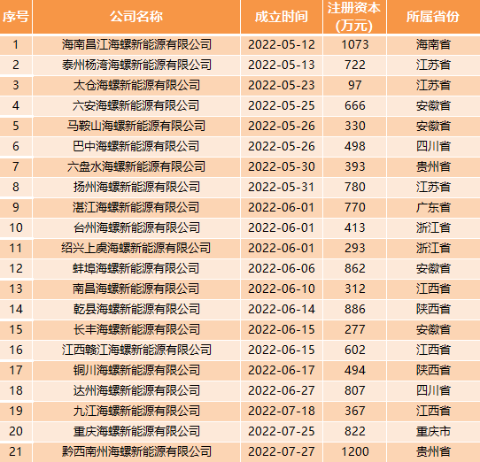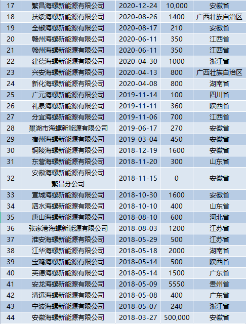 2018年-2021年,海螺新能源獨立出資設立了44家新能源公司。海螺新能源主營業務包括光伏發電、風力發電、儲能系統領域內的技術開發、技術服務,電力項目的建設、運營和管理等。
