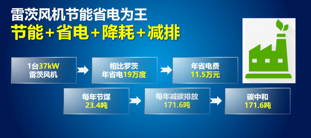從經濟效益看,用雷茨風機取代傳統羅茨風機為企業節約大量成本。例如一臺37kW的雷茨風機,相比羅茨風機每年大約可以省電19萬度,省電費約11.5萬元,減碳排放約172噸。雷茨成為“碳達峰”時代名副其實的節能小標兵。