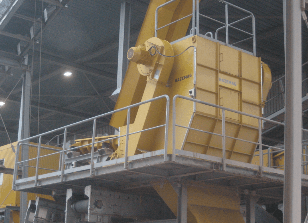 哈茲馬克HPI系列初級反擊式破碎機是建筑垃圾處理行業中性能最卓越的設備,它配置了自動化的排料控制系統,不會因為鐵器進入破碎機而造成停機或者故障;高速運轉的轉子能夠對原料實施的高頻次打擊,有效分離出原料中的鐵器。同時,破碎機底部配置振動給料機,可以消除過長的鋼筋及其他鐵器排出時對皮帶機的沖擊。而且,破碎機的控制系統是全自動化的,出料粒度的大小、板錘磨損的補償都是自動控制的,出料粒度調節方便,無需大量的人工維護。