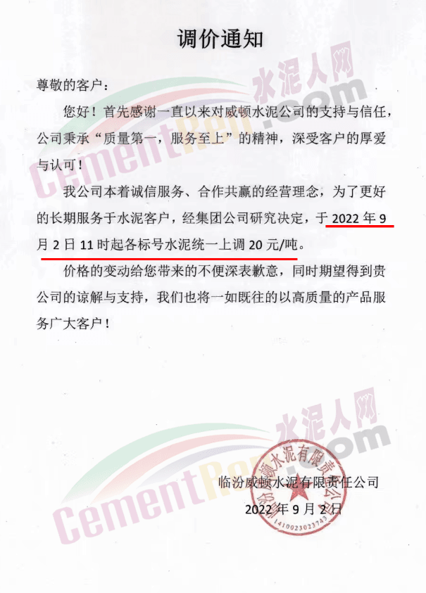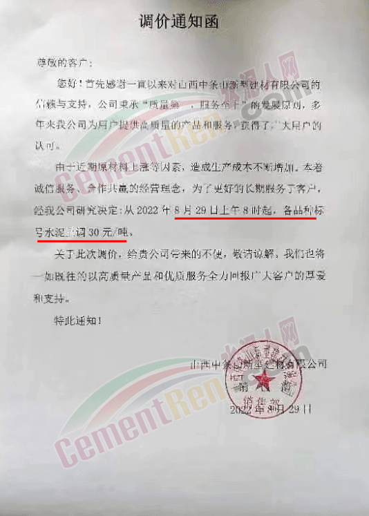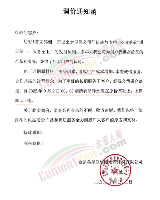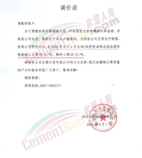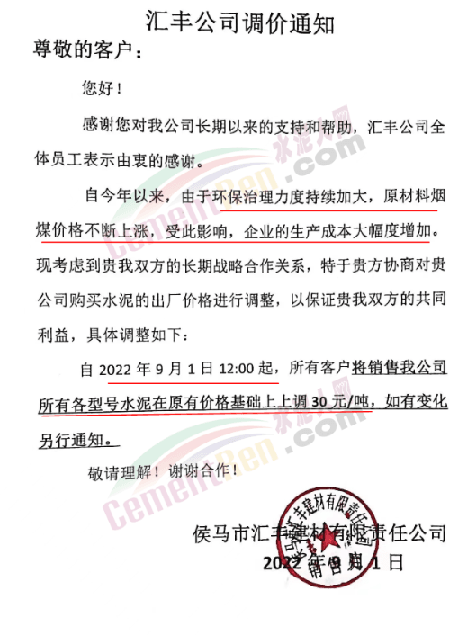 自8月下旬大集團高管北京開會之后,北方多區域便出現了調漲的態勢。9月1日,北京、天津、河北、山西、寧夏、甘肅、山西等多地主要品牌企業發函調漲。北京金隅發河北承德區域水泥價格更是一次性上調了130元/噸。