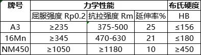 表一 材料機械性能對比