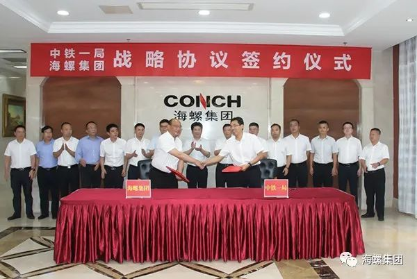 中鐵一局集團副總經理尚武孝,海螺集團總經濟師丁鋒代表雙方簽約。