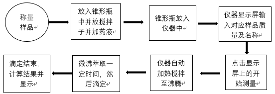 稱量一定量的樣品,將其倒入150ml錐形瓶中,加上30ml的乙二醇-無(wú)水乙醇溶液,放入攪拌子,然后放入儀器中對(duì)應(yīng)位置,裝上冷凝管,使得錐形瓶與冷凝管緊密連接,在儀器顯示屏對(duì)應(yīng)的位置輸入稱取的樣品質(zhì)量及樣品名稱,點(diǎn)擊開始測(cè)量,儀器會(huì)自動(dòng)進(jìn)行攪拌、加熱、萃取、滴定及結(jié)果計(jì)算,如圖2。