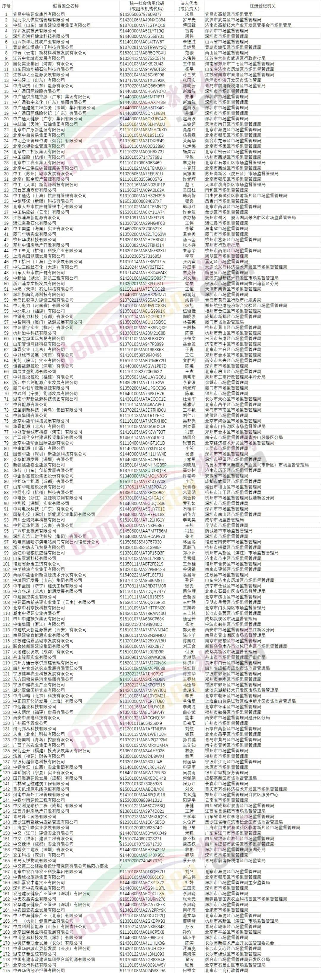 中央企業公告的假冒國企名單匯總(第二批)